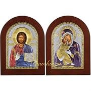 Складень Владимирская БМ и Спас Премудрый, икона с серебряным окладом