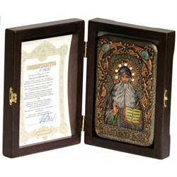 Подарочная икона Максим Грек под старину в деревянной шкатулке