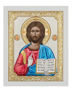 Икона “Господь Вседержитель” греческая икона в белом деревянном окладе, цветная эмаль, шелкография. От греческого производителя “Silver Canvas”