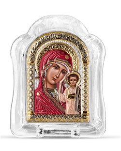 Икона Казанская Божия Матерь, цветная эмаль в окладе из муранского стекла